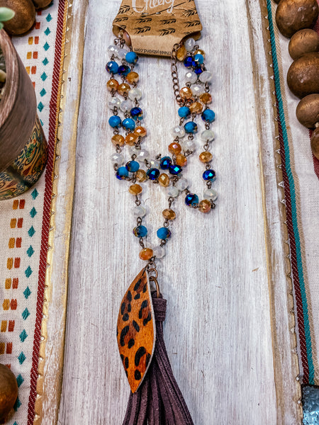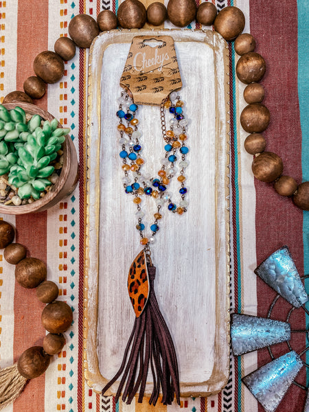 - This necklace measures about 22 inches long including the fringe with a 3" extender. Very pretty and elegant for a night out!